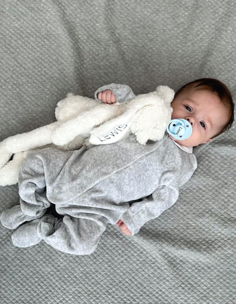 Le costume de bébé est fait d'un velours merveilleusement doux et a une fermeture à l'avant, de sorte que vous pouvez facilement changer le bébé.